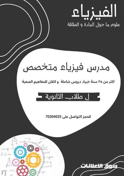مدرس فيزياء متخصص لطلاب الثانوية اكثر من 25 سنة خبرة في المناهج القطرية دروس شاملة و اتقان المفاهيم الصعبة للحجز التواصل على 70304025